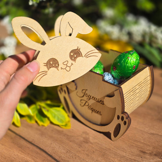 Boîte Lapin de Pâques - gravée "Joyeuses Pâques"